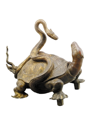 ▲明代鎏金銅玄武。
