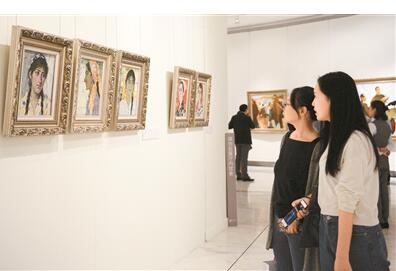 仔細(xì)觀察不難發(fā)現(xiàn),革命浪漫氣息處處彌漫在閻文喜的作品之中。觀眾呂女士告訴記者,通過(guò)他的作品,仿佛帶我們重溫那個(gè)時(shí)代的藝術(shù),可以感受到一段歷史的質(zhì)感?!皬乃墓P觸中,可以看到那段充滿激情的歷史,也將我們的記憶帶到那崢嶸歲月。”