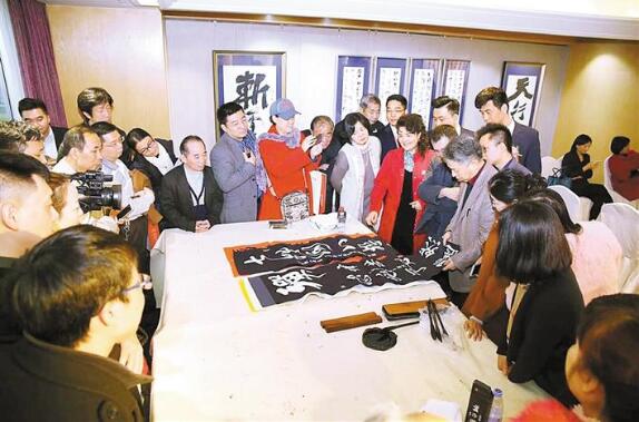 ▲孫憲華現(xiàn)場點(diǎn)評書法作品。