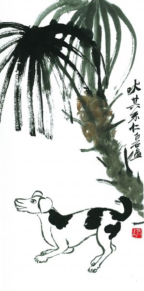 隨著上世紀九十年代國內(nèi)寵物熱的興起,狗越來越多地進入大眾的日常生活,頻頻成為當代畫家的表現(xiàn)對象。當代大家黃永玉先生的水墨畫,具有諷刺與幽默的色彩,他畫的狗系列畫作,令人忍俊不禁。著名畫家史國良的西藏風情畫中,我們也經(jīng)常能看到狗的身影,如他畫的《八角街上》,畫中靜臥一角的黑狗使整個畫面平添了許多生活氣息。古今畫狗的名家名作還有很多,實難一一列舉。狗的忠誠、溫順是人類的最愛,正緣于狗與人類的這種特殊關系,狗才成為畫家們百畫不厭的題材。