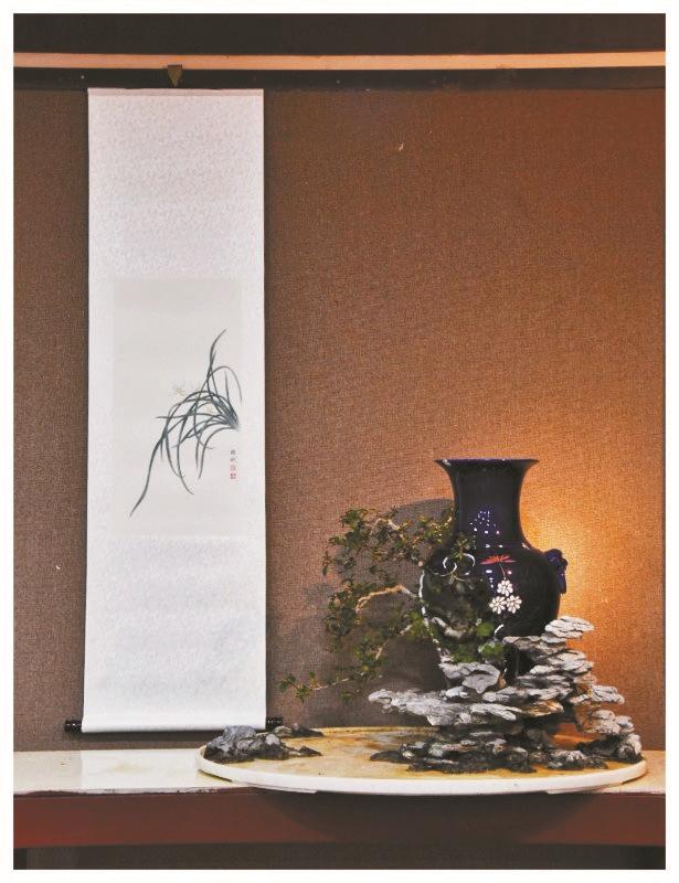 “雙粹”會(huì)展特點(diǎn)是景畫(huà)交融,典雅清心的工筆國(guó)畫(huà),配上美輪美奐的花瓶盆景,賞心悅目,讓觀者流連忘返。