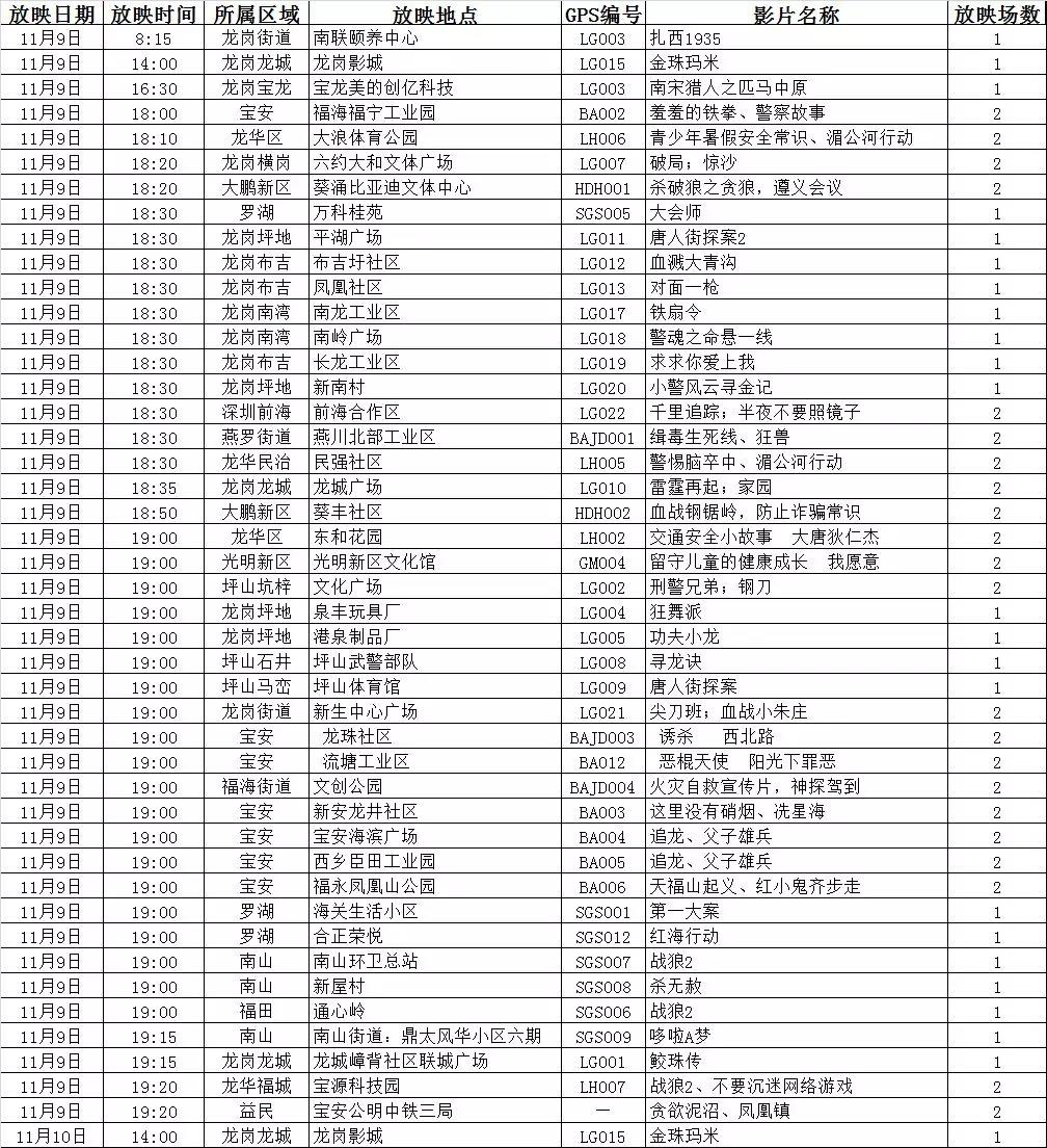 【深圳市萬(wàn)場(chǎng)電影惠百姓】今晚11月9日(星期五)露天免費(fèi)放映電影安排