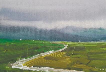 深圳美術(shù)館策展人李原原認為,方曉龍的水彩畫作品常常以寬廣的視角展開對山川、大地的寫實描繪,從容細膩的筆觸和干凈清爽的色彩蘊含著磅礴的氣勢,表現(xiàn)出大自然的靜謐以及自在的土地。