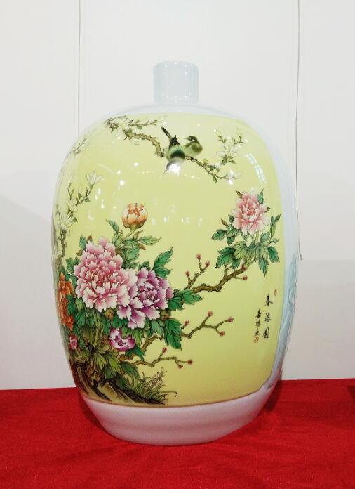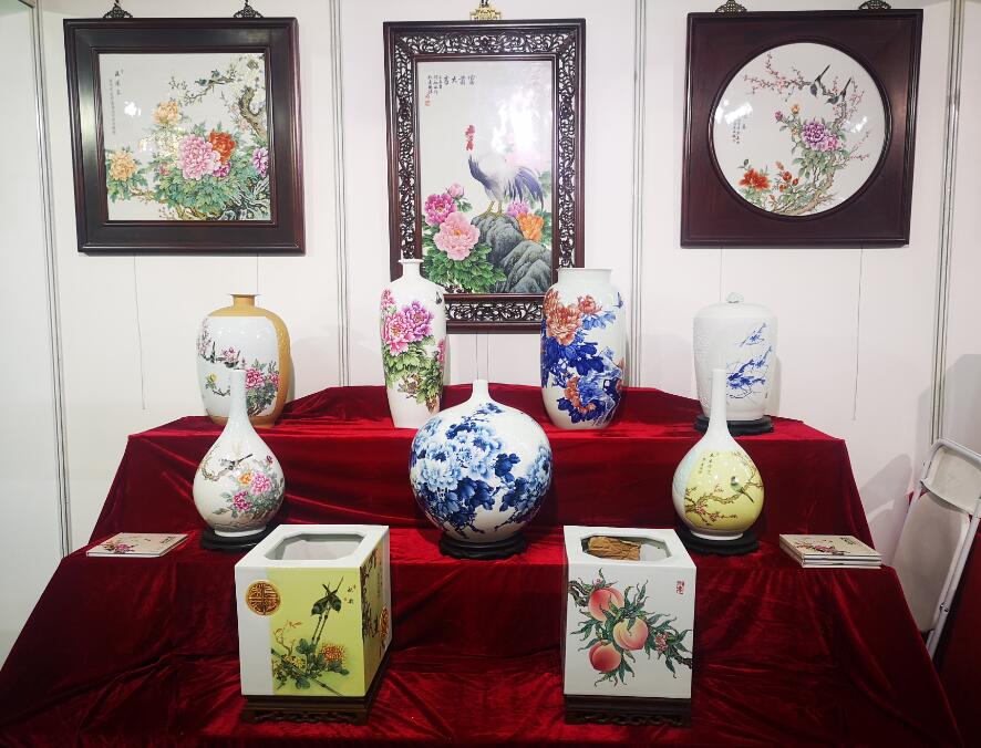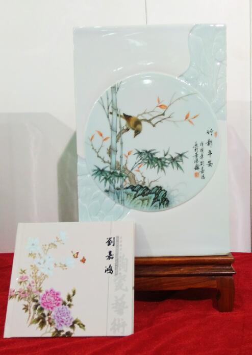 江西省陶瓷技能大師、江西省高級(jí)工藝美術(shù)師、惲派花鳥(niǎo)第十二代傳人、景德鎮(zhèn)青年陶瓷藝術(shù)家劉嘉鴻此次展會(huì)展出的陶瓷藝術(shù)作品共計(jì)35件,包含瓷板畫(huà)、瓷瓶、瓷盤(pán)、青花瓷、青花斗彩瓷等,其中《春滿園》、《錦堂富貴》、《長(zhǎng)壽圖》等作品呈現(xiàn)陶瓷技藝,展示出劉嘉鴻深厚的藝術(shù)造詣。