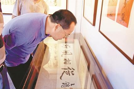觀眾觀賞書法作品。