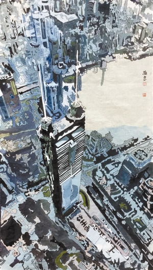 深圳地標(biāo)性建筑繪入了水墨畫中,賦予當(dāng)代建筑一種傳統(tǒng)詩意。