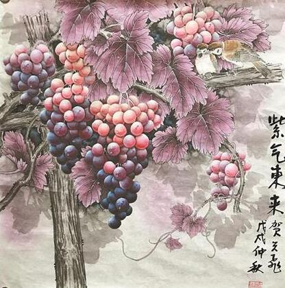 藝術家賀天飛的一系列以葡萄為主題的作品正在位于卓越時代廣場展出。