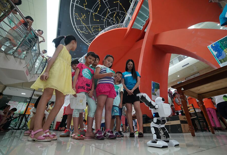 在春晚上舞臺上跳舞的機(jī)器人,相信大家依然記憶猶新。而在當(dāng)天的活動中,也有兩臺跳舞機(jī)器人也受到了小朋友們的追捧。金雞獨(dú)立、俯臥撐、翻筋斗,各種高難度的動作統(tǒng)統(tǒng)難不倒這兩臺動作靈活的機(jī)器人。據(jù)了解,這兩臺機(jī)器人除了能自動跳舞外,還能通過遙控器,在小朋友的操作下做出各種高難度動作。樂聚(深圳)機(jī)器人技術(shù)有限公司的工作人員表示,通過手動操控機(jī)器人不僅鍛煉了孩子的想象力和動手能力,啟迪與激發(fā)了他們的科技創(chuàng)新意識和興趣,還讓孩子們體驗(yàn)了科技的魅力。