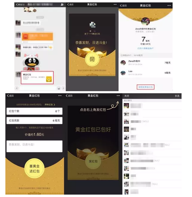 我們也可以在微信群里發(fā)紅包,基于風(fēng)險(xiǎn)控制及消費(fèi)者權(quán)益保護(hù)的相關(guān)要求,“黃金紅包”采取了一個(gè)不超過1克的限制。