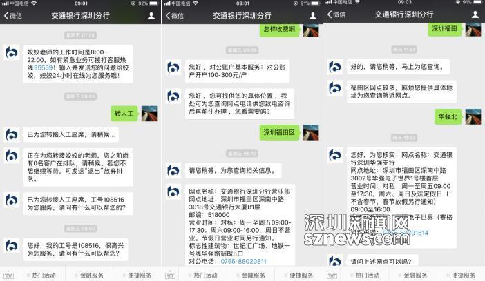 近日,交通銀行深圳分行云端銀行人工客服功能正式上線。據了解,客戶除了通過能享受智能機器人24小時在線問答服務外,交通銀行深圳分行還將提供人工坐席客服務,為客戶解答較為復雜及個性化的問題,進一步滿足客戶需求。