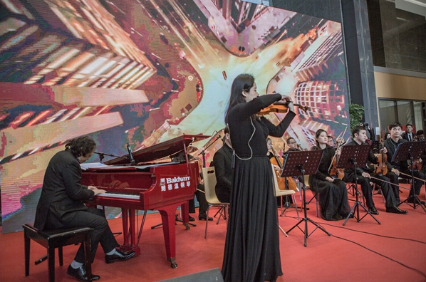 《查爾達(dá)斯舞曲》讓人心靈起舞,《somewhere in time》讓人愛意盎然,《山魔王的宮殿》詼諧浪漫,《加勒比海盜》熱血激昂……時而渾厚、時而清麗、時而高亢、時而低婉的交響樂,配上或秀美或壯闊的電子LED背景屏,讓現(xiàn)場觀眾從聽覺到視覺均感受到了強(qiáng)烈震撼。除了在大樓里辦公的招行員工之外,現(xiàn)場有近百位招行客戶駐足欣賞,有客戶忍不住感嘆:“招行就是有藝術(shù)范兒”。贊賞的話音剛落,招商銀行又出新玩法---招行深圳分行員工姜浩現(xiàn)場作為主鋼琴手和福田愛樂樂團(tuán)即興合作演出《克羅地亞狂想曲》,首次合作便天衣無縫、配合完美,贏得了現(xiàn)場的陣陣掌聲,讓聽眾一直夸贊“招行真是人才濟(jì)濟(jì)”。