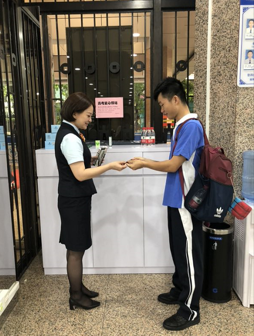 中午時(shí)分,一位紅嶺中學(xué)的考生在銀行大堂經(jīng)理的熱情招呼下免費(fèi)領(lǐng)取了文具盒礦泉水。通過聊天,這位考生表示今天上午考得很好,對(duì)建行的助力高考愛心驛站服務(wù)表示感謝。(通訊員 梁莉)