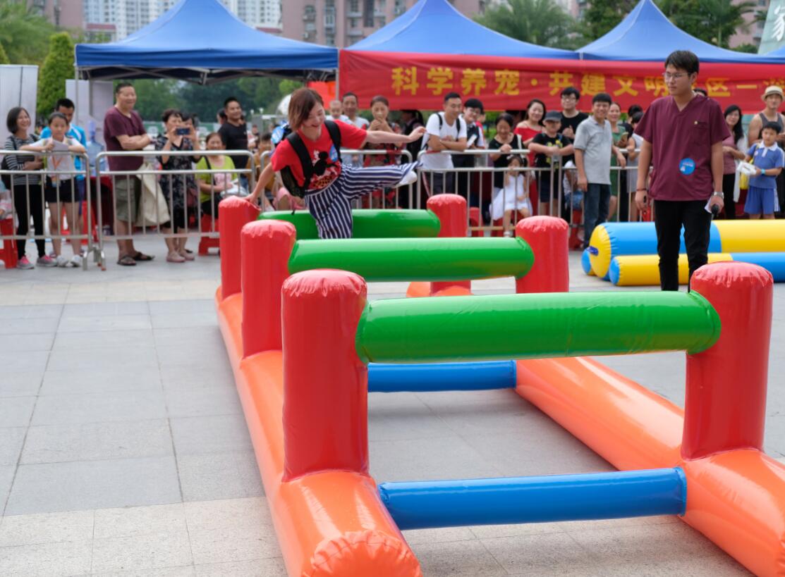記者在現(xiàn)場(chǎng)看到,運(yùn)動(dòng)會(huì)由汪星人“翻山越嶺”障礙物通關(guān)和喵星人“萌主起駕”鏟屎官闖關(guān)兩個(gè)項(xiàng)目組成,比賽競(jìng)爭(zhēng)激烈趣味無窮,吸引了社區(qū)鄰里參與互動(dòng),活動(dòng)氣氛歡樂無邊。此次活動(dòng)既為社區(qū)帶來一場(chǎng)別開生面的趣味活動(dòng),又為社區(qū)居民宣傳了科學(xué)養(yǎng)寵的相關(guān)知識(shí),倡導(dǎo)文明養(yǎng)寵和諧社區(qū)的正能量?;顒?dòng)現(xiàn)場(chǎng)處處歡聲笑語(yǔ),社區(qū)居民與小寵物們共享歡樂。
