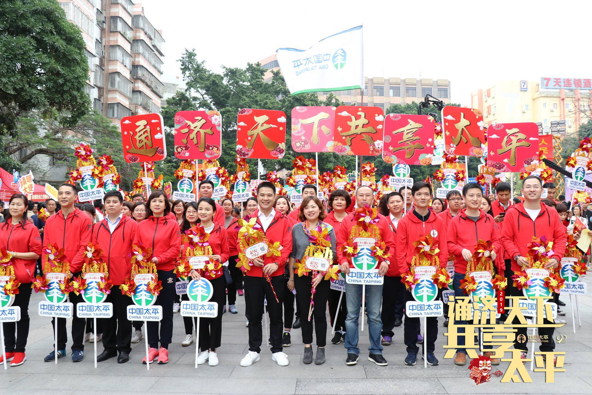當(dāng)日下午,在佛山市領(lǐng)導(dǎo)宣布活動(dòng)啟動(dòng)后,太平人壽佛山分公司、太平財(cái)險(xiǎn)佛山中心支公司、太平養(yǎng)老佛山中心支公司等50名代表組成企業(yè)方陣團(tuán),與市內(nèi)慈善先進(jìn)人物、市直機(jī)關(guān)人員代表、愛心公益組織、市民代表等12個(gè)方陣上萬人組成浩浩蕩蕩的隊(duì)伍,從佛山市政府出發(fā),一手拿著金燦燦的風(fēng)車和宣傳標(biāo)語牌,一邊熱情高呼“通濟(jì)天下·共享太平”的宣傳口號(hào)通過通濟(jì)橋,向市民展現(xiàn)中國太平良好的精神風(fēng)貌,引來兩邊路人的駐足關(guān)注。根據(jù)官方數(shù)據(jù)顯示,當(dāng)天共計(jì)79.52萬人參與行通濟(jì)。