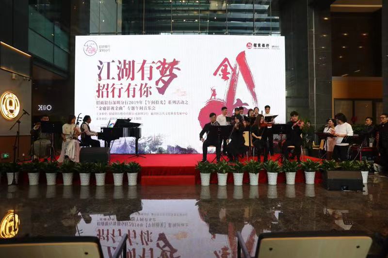 1月23日中午,招商銀行深圳分行攜手福田愛樂樂團舉辦的深圳分行2019年【午間拾光】系列活動之“金庸影視金曲”專題午間音樂會在分行大廳盛大上演。分行員工及特邀客戶近300人共同欣賞了此次別開生面的視聽盛宴。
