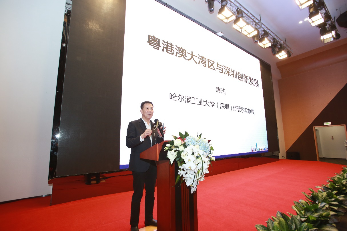 在嘉賓演講環(huán)節(jié),深圳市原副市長、哈工大深圳經(jīng)管學院教授唐杰向與會嘉賓作了題為《粵港澳大灣區(qū)背景下的深圳發(fā)展新機遇》的精彩報告。唐教授回顧了深圳四十年的發(fā)展進程,表示深圳是個由無限個傳奇故事編織起來的年輕城市,新的機遇帶來新的產(chǎn)業(yè)震蕩,正成長為我國重要的經(jīng)濟、貿(mào)易、金融中心和創(chuàng)新發(fā)展的代表。