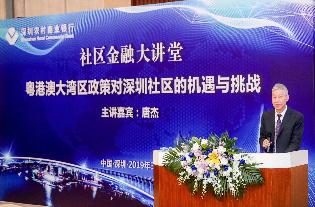 深圳新聞網(wǎng)3月22日訊 22日上午,由深圳農(nóng)村商業(yè)銀行主辦的“社區(qū)金融大講堂”在深圳市資本市場(chǎng)學(xué)院揭開帷幕?;顒?dòng)邀請(qǐng)了龍崗區(qū)、坪山區(qū)及大鵬新區(qū)的社區(qū)企業(yè)代表參加,深圳農(nóng)商行董事長李光安出席并致辭,特邀嘉賓唐杰教授作主題演講,共話粵港澳大灣區(qū)政策對(duì)深圳社區(qū)的機(jī)遇與挑戰(zhàn)。