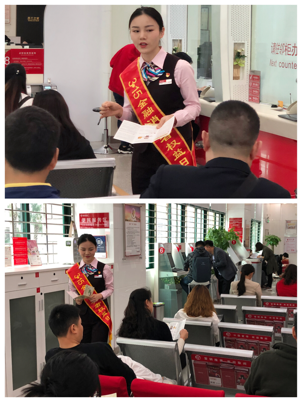 同時(shí)在營(yíng)業(yè)廳積極舉辦微沙龍、金融知識(shí)小講座、互動(dòng)問答等,由黨員代表佩戴黨員徽章、亮明身份,擔(dān)任消保宣傳專員,主動(dòng)利用服務(wù)間隙普及金融消費(fèi)者八項(xiàng)權(quán)利,提示金融消費(fèi)者到正規(guī)持牌機(jī)構(gòu)、選擇適當(dāng)?shù)漠a(chǎn)品和服務(wù),并為客戶提供貼心關(guān)懷,送上飲品、零食等。