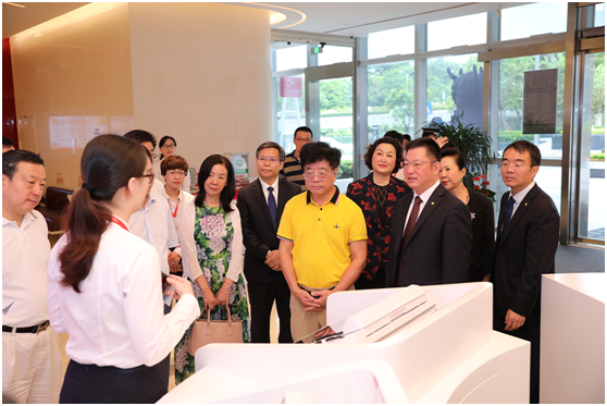 在華夏銀行深圳分行黨委書記、行長(zhǎng)陳傳龍的陪同下,深商聯(lián)會(huì)長(zhǎng)、執(zhí)行會(huì)長(zhǎng)及各企業(yè)家來到分行營(yíng)業(yè)部,考察調(diào)研智慧網(wǎng)點(diǎn)建設(shè)情況,在工作人員講解下,現(xiàn)場(chǎng)觀摩體驗(yàn)了“人臉識(shí)別+指靜脈”智能機(jī)具應(yīng)用,對(duì)營(yíng)業(yè)網(wǎng)點(diǎn)智能化、專業(yè)化服務(wù)水平給予肯定。同時(shí),參觀黨員之家、職工之家、青年之家,現(xiàn)場(chǎng)感受華夏銀行深圳分行企業(yè)文化建設(shè)。隨后,雙方高管進(jìn)行了親切座談。