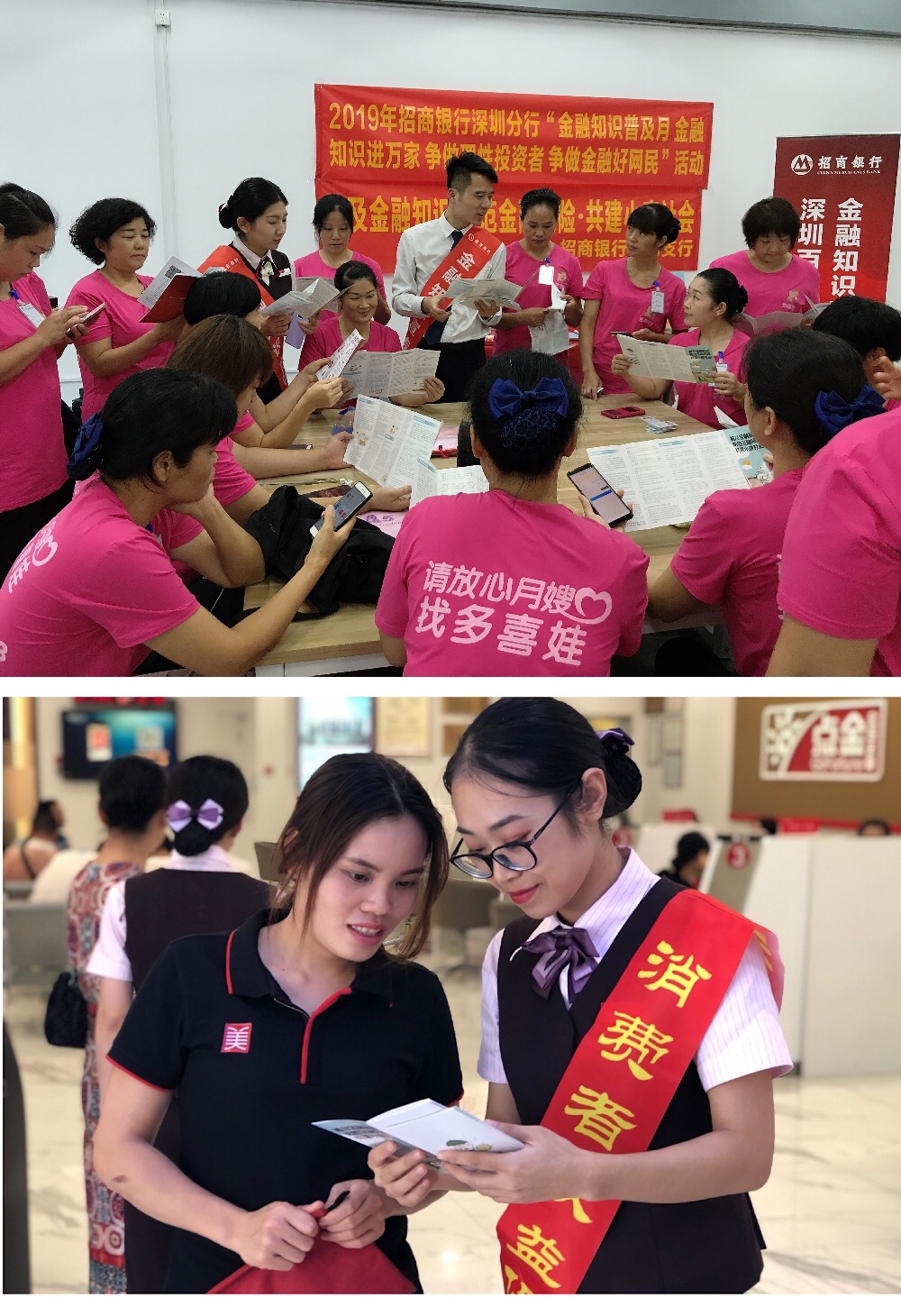 招商銀行深圳分行各網(wǎng)點落實分行黨委走進產(chǎn)業(yè)園、走進社區(qū)、走進學校和醫(yī)院、走進城中村“四個走進”工作部署,針對月嫂、青年務(wù)工者、環(huán)衛(wèi)工人、老年人等不同群體開展宣傳教育活動。