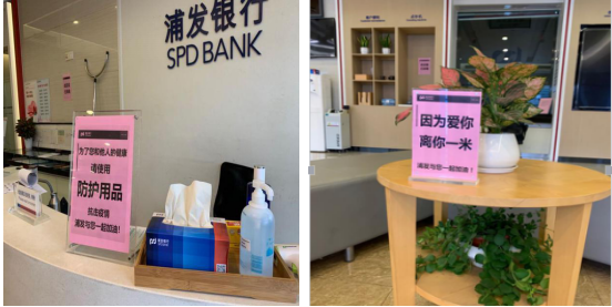 2月10日,在接到浦發(fā)深圳分行統(tǒng)一部署的復(fù)工安排后,科苑支行落實網(wǎng)點廳堂的各項防疫措施和人員復(fù)工的安全措施,在確保員工和客戶健康安全的前提下,全力保障各項金融服務(wù)需求。走進浦發(fā),可以看到廳堂多處區(qū)域配備了口罩、消毒液、一次性手套等防控物資,在廳堂顯眼處設(shè)計擺放了“因為愛你,離你一米”等暖心提示。其中,黨員同志們帶頭在廳堂進行宣傳指引,協(xié)助做好防護措施。