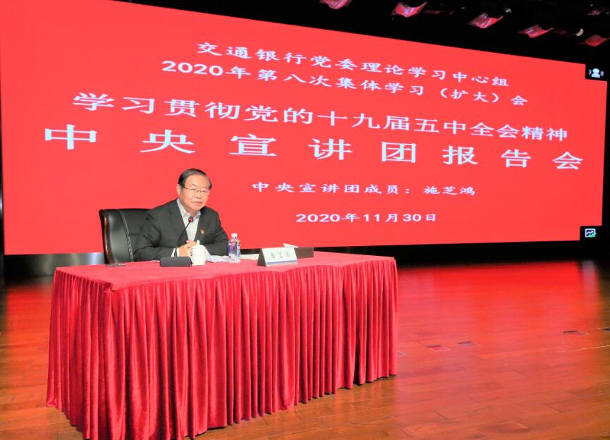 深圳新聞網(wǎng)·見圳客戶端2020年12月1日訊 昨日,交通銀行舉行學(xué)習(xí)貫徹黨的十九屆五中全會(huì)精神中央宣講團(tuán)報(bào)告會(huì)暨黨委理論學(xué)習(xí)中心組第八次集體學(xué)習(xí)(擴(kuò)大)會(huì)。中央宣講團(tuán)成員、中央政策研究室原副主任施芝鴻作宣講報(bào)告,黨委書記、董事長(zhǎng)任德奇主持報(bào)告會(huì)。