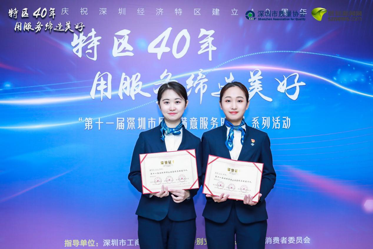 陳萍、董思岑獲“深圳市顧客滿(mǎn)意服務(wù)明星個(gè)人”獎(jiǎng)