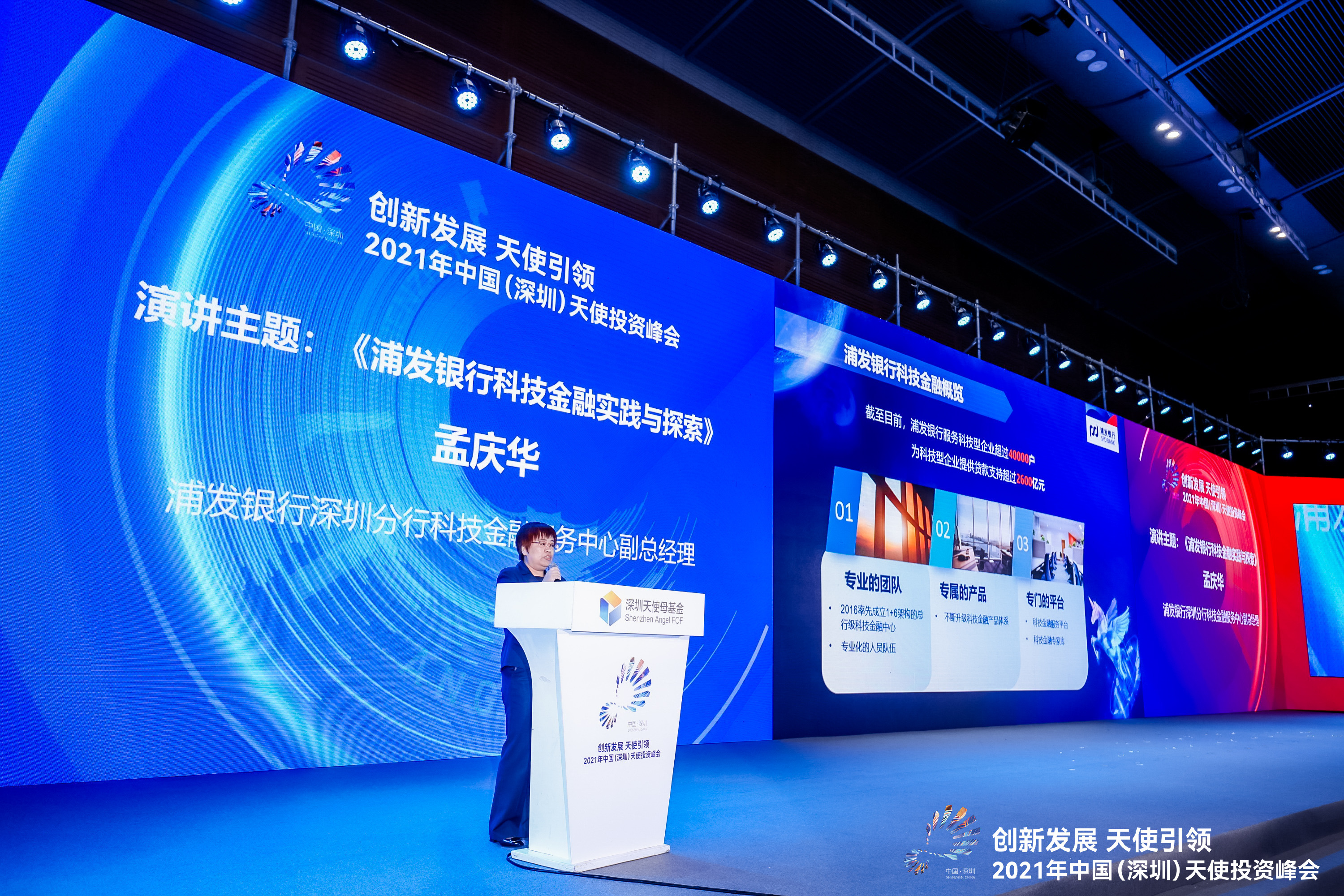 峰會第二天圍繞“培育優(yōu)秀初創(chuàng)企業(yè)”和“搭建天使投資生態(tài)”兩大主題展開,天使投資機(jī)構(gòu)、產(chǎn)業(yè)集團(tuán)、初創(chuàng)科技企業(yè)、創(chuàng)業(yè)服務(wù)團(tuán)體等代表出席。浦發(fā)銀行深圳分行科技金融中心副總經(jīng)理孟慶華以“浦發(fā)銀行科技金融實踐與探索”為主題發(fā)表致辭。
