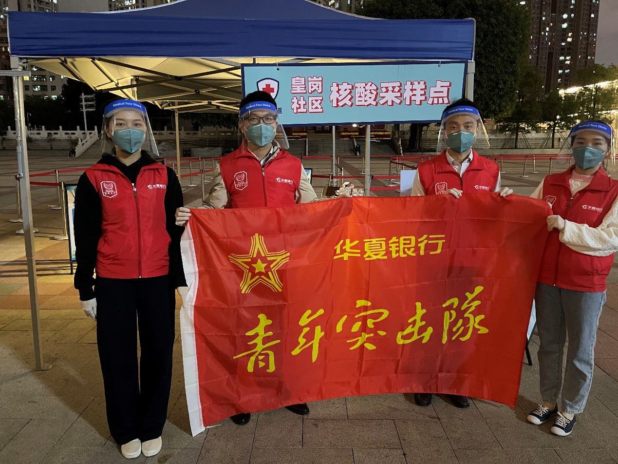 華夏銀行深圳分行在做好金融服務(wù)的同時(shí),迅速響應(yīng)號(hào)召,第一時(shí)間發(fā)出招募令,號(hào)召全行青年志愿者踴躍參與疫情防控。來(lái)自分支行的黨員、青年團(tuán)員迅速集結(jié),奔赴到疫情防控一線(xiàn),在做好安全防護(hù)的基礎(chǔ)上,深入福田街道皇崗文化廣場(chǎng)、高發(fā)城馳廣場(chǎng)核酸采集點(diǎn),協(xié)助防疫工作組維護(hù)現(xiàn)場(chǎng)秩序、身份信息登記等志愿服務(wù)工作,全面助力提升核酸檢測(cè)效率。對(duì)于一些帶小孩或者不熟悉掃碼程序的群眾,志愿者們熱情耐心給予指導(dǎo),確保核酸采集點(diǎn)保持良好秩序。