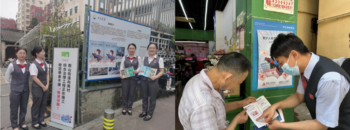 為提升人民群眾對人民幣的鑒偽能力,降低城中村地區(qū)假幣危害,維護城中村地區(qū)穩(wěn)定安寧和群眾切身利益,8月16日至8月18日,廣發(fā)銀行深圳分行組織30余家支行走進深圳市向西村、向南村、崗廈村、平湖村等24個城中村,向居民、務(wù)工人員、老年人、青少年等群體普及現(xiàn)行流通人民幣防偽特征和“一看二摸三聽四測”的真假幣辨識方法?!耙豢础笔侵缚雌泵嬲孀髠?cè)空白處,迎光透視,真鈔水印清晰,有立體感;“二摸”是指摸票面人像、盲文點、中國人民銀行行名等處,真鈔有明顯凹凸感;“三聽”是指用力抖動鈔票或手指輕彈票面,真鈔能聽到清脆響亮聲音;“四測”是指可以用簡易工具進行熒光檢測,假幣在熒光下整張發(fā)白發(fā)亮。