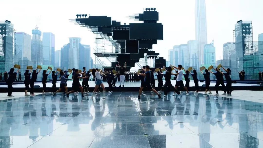 主題曲《新的一天》整首歌以小見大,用年輕上班族的拼搏精神體現(xiàn)深圳人共性,引領(lǐng)時代進(jìn)步潮流。“ 拒絕空想冒險/誰不渴望明天/有夢就要實(shí)現(xiàn) ”,交織的夢想成就了深圳?!? 新的一天就在眼前/我的命運(yùn)我要自己改變 ”,改革開放賦予了這個時代勇敢堅持的精神。為了排演這個節(jié)目,導(dǎo)演卓依·馬可尼利和全體演員歷經(jīng)了一個月的排練,克服了演出場地露天的高溫,在整個節(jié)目近五分鐘的時長里,展現(xiàn)了新時代青年對于工作的拼勁與堅韌、活力和激情,彰顯了剛?cè)嵯酀?jì)、自強(qiáng)不息的深圳精神。