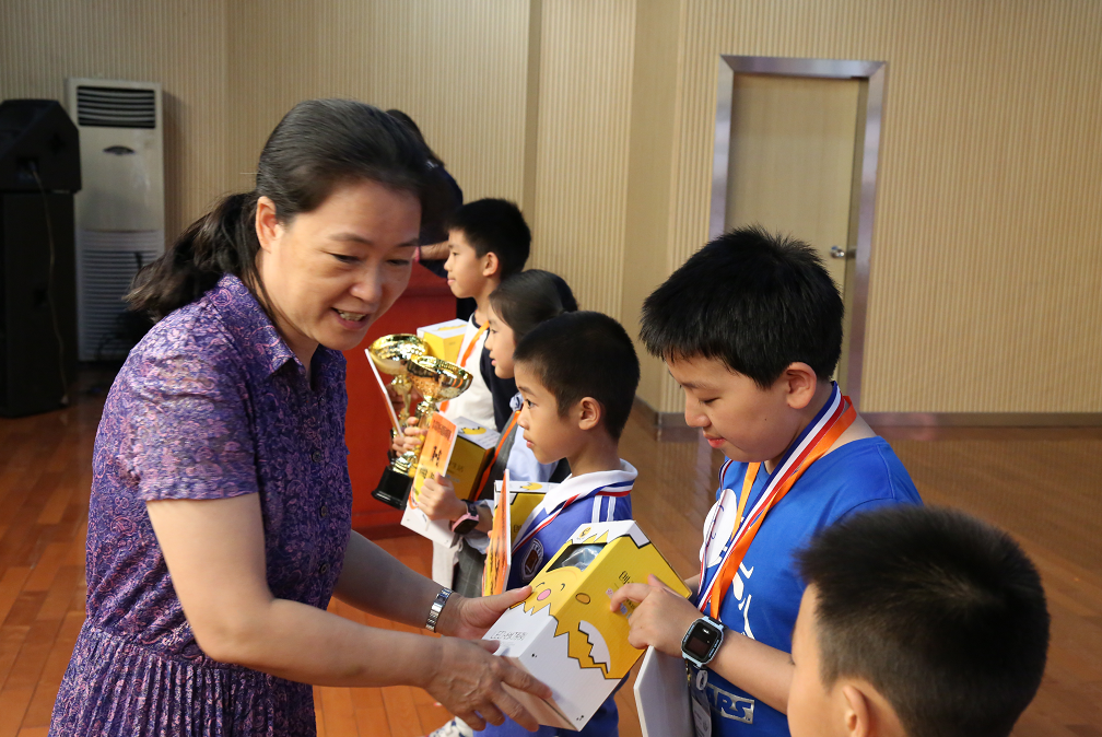 中國國際象棋協(xié)會副主席、深圳棋院院長劉適為獲獎(jiǎng)選手頒獎(jiǎng)