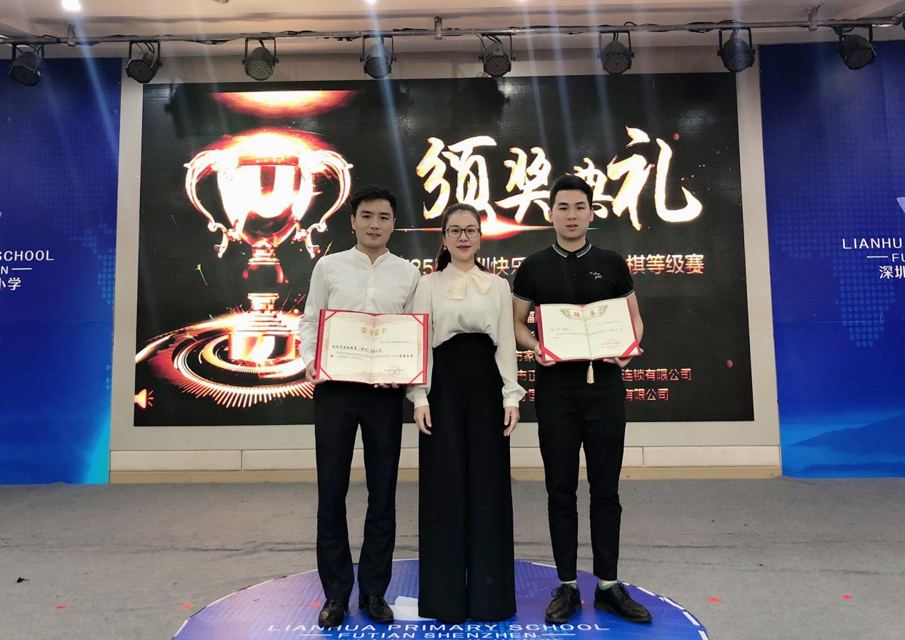 福田區(qū)蓮花小學(xué)校長王華斌先生為獲獎棋手頒獎