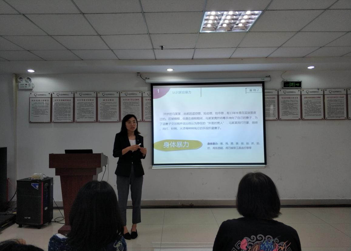 活動現(xiàn)場,維德法律服務(wù)中心志愿律師劉秀為大家講授以“要愛不要傷害”為主題的反家暴講座。她以當(dāng)下反家暴的熱點與經(jīng)典案例為切入點,就如何維護女性在婚姻家庭中的權(quán)益問題與居民和社工展開深入探討。值得一提的是,劉律師還與社區(qū)工作人員一起,以親身體驗的方式,復(fù)刻了現(xiàn)實生活中的法律咨詢現(xiàn)場。