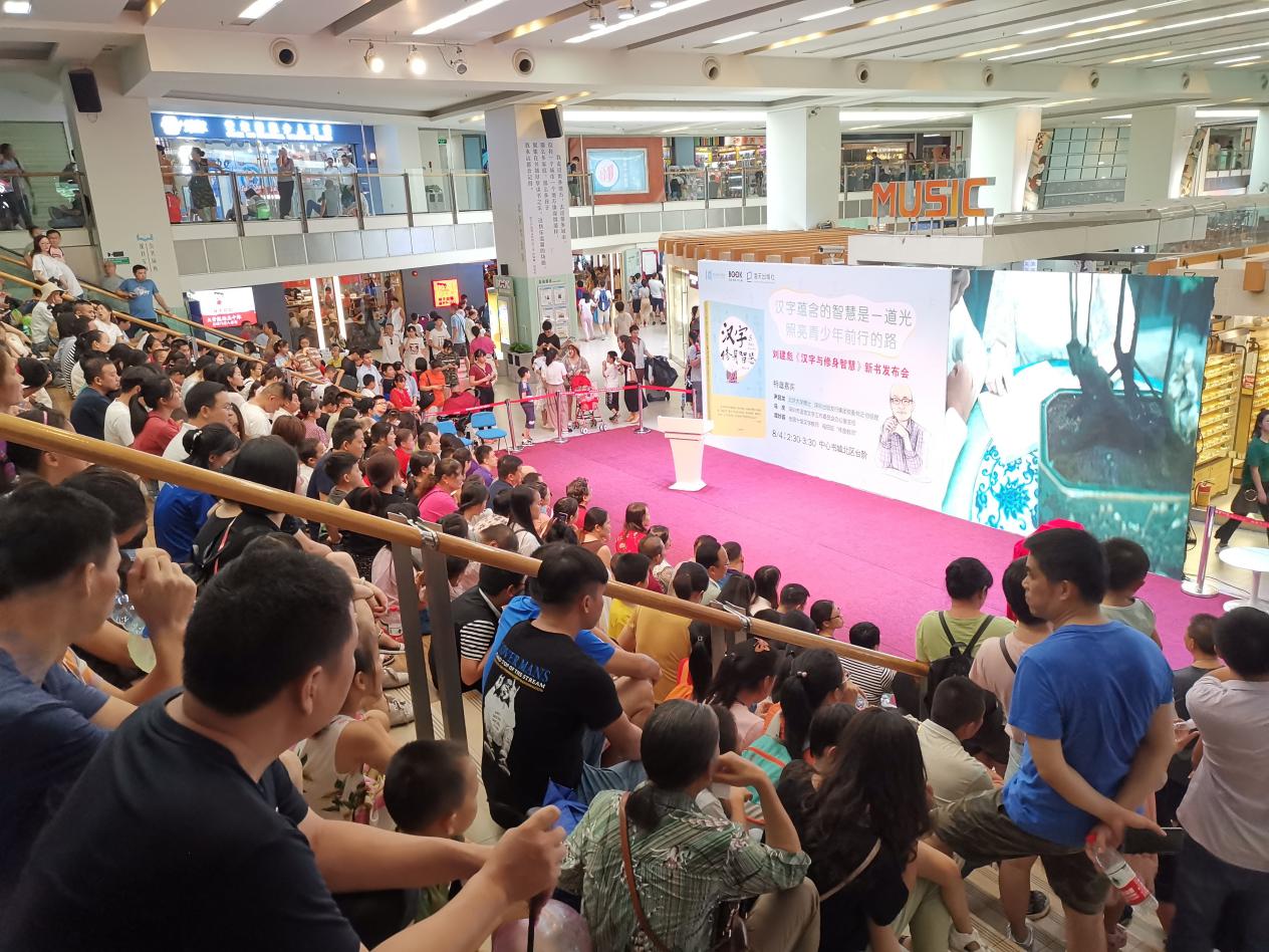 深圳新聞網(wǎng)訊 8月4日下午,壹讀書會創(chuàng)始人、知名閱讀推廣人劉建彪《漢字與修身智慧》新書發(fā)布會在深圳書城中心城隆重召開,本次活動由海天出版社和深圳書城中心城共同舉辦,北京大學文學博士、深圳出版發(fā)行集團黨委 書記、總經(jīng)理尹昌龍,深圳市語言文字工作委員會辦公室主任馬慶,全國十佳文學教師、福田區(qū)“年度教師”譚妙蓉三位嘉賓蒞臨現(xiàn)場并致辭。本次新書發(fā)布受到市民的熱烈追捧,活動開始前中心書城北區(qū)臺階、過道以及走廊或坐著或站著翹首以盼的閱讀愛好者。