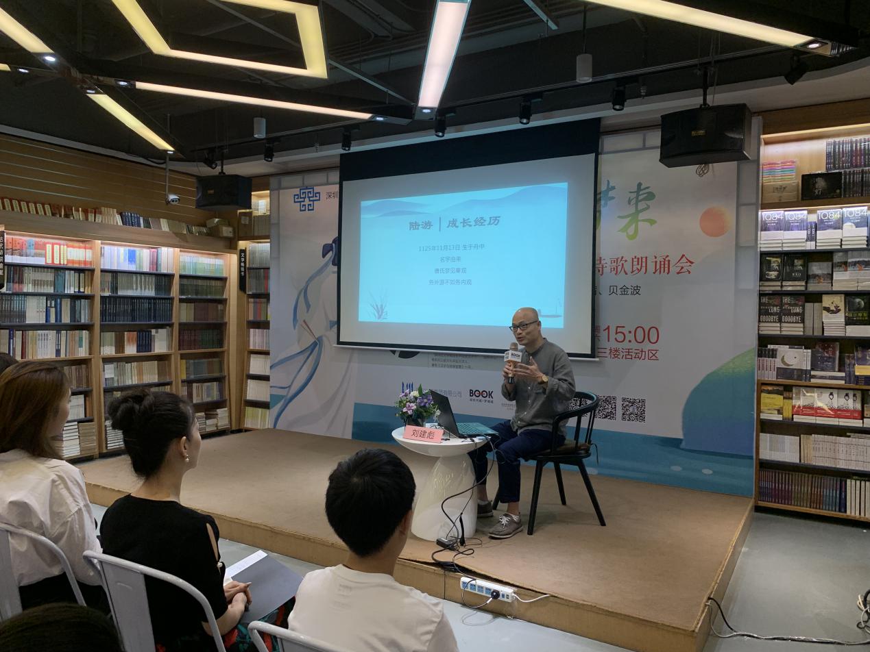 深圳新聞網(wǎng)訊 9月21日下午,由深圳市宣傳文化事業(yè)發(fā)展專項(xiàng)基金資助的“新時(shí)代中華優(yōu)秀傳統(tǒng)文化進(jìn)社區(qū)”項(xiàng)目之“鐵馬冰河入夢來”陸游愛國詩詞公益講座暨陸游愛國詩詞朗誦會(huì)在羅湖書城三樓活動(dòng)區(qū)成功舉辦。本次活動(dòng)由深圳市壹書文化傳播有限責(zé)任公司、深圳書城羅湖城共同主辦,壹書閱讀推廣人、愛詩家創(chuàng)始人劉建彪先生擔(dān)任主講嘉賓?;顒?dòng)尚未開始,現(xiàn)場已座無虛席,觀眾們對(duì)講座充滿了期待,更有小朋友們朗誦起了陸游的名句。