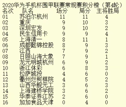 見圳客戶端?深圳新聞網(wǎng)2020年8月27日訊(記者周錦春)今日,2020“華為手機杯”中國圍棋甲級聯(lián)賽第四輪繼續(xù)在浙江長興進行,深圳宏發(fā)隊以3比1大勝上屆亞軍龍元明城杭州隊,目前積9分,在積分榜上與重慶隊、民生信用卡隊并列第二名。本輪亮點:戎毅威風四連勝!時越持續(xù)低迷。