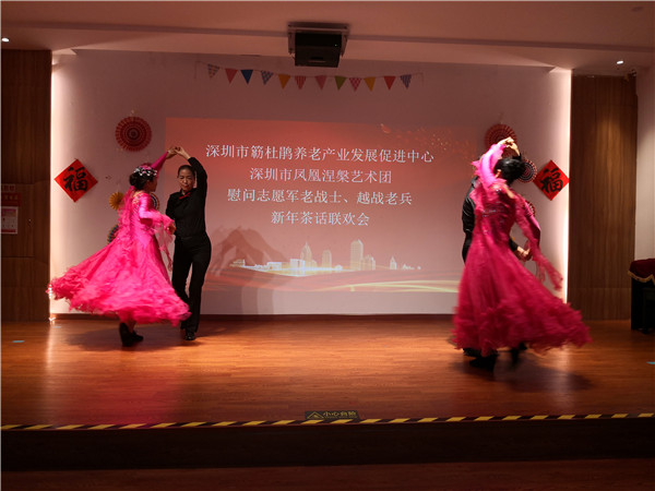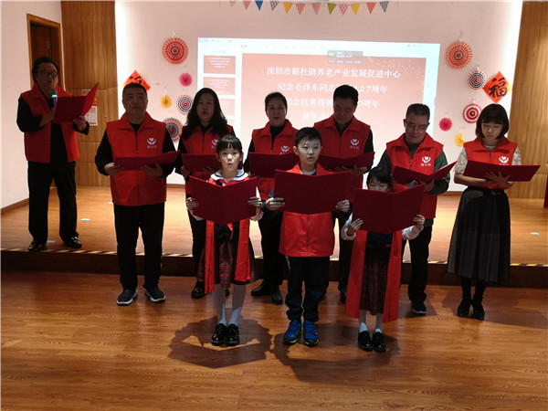 紀(jì)念活動伊始,深圳市社會組織管理局副局長白凌在出差途中發(fā)來視頻祝賀。簕杜鵑養(yǎng)老產(chǎn)業(yè)促進(jìn)中心上級領(lǐng)導(dǎo)張道新也一直關(guān)注和支持活動的進(jìn)展?;顒蝇F(xiàn)場,簕杜鵑養(yǎng)老產(chǎn)業(yè)促進(jìn)發(fā)展中心黨支部書記于軍發(fā)表了熱情的簡短的講話。他首先對前來參加和指導(dǎo)活動的老首長、老前輩和各位嘉賓表示衷心的感謝。隨后,他簡短地介紹了簕杜鵑養(yǎng)老中心的發(fā)展情況。他說,該養(yǎng)老中心是按照習(xí)總書記“推動養(yǎng)老事業(yè)多元化、多樣化發(fā)展”的指示下成立的,得到社會管理局的支持和指導(dǎo),將會在深港兩地開展養(yǎng)老信息咨詢、養(yǎng)老機(jī)構(gòu)服務(wù)等。目前,成立了簕杜鵑養(yǎng)老產(chǎn)業(yè)發(fā)展中心黨支部、簕杜鵑養(yǎng)老產(chǎn)業(yè)藝術(shù)團(tuán),并將爭做黨建、文化建設(shè)的“雙排頭兵”作為該社團(tuán)的目標(biāo)之一。今年,已開展獻(xiàn)愛心走訪慰問,重陽節(jié)為羅湖區(qū)鶴年居家養(yǎng)老中心的老人送去4臺多功能輪椅、100支手杖、14400個口罩等實(shí)用物品;協(xié)調(diào)部分社康中心、醫(yī)院和相關(guān)基金會共同舉辦大型的老年人義診活動;同時與市內(nèi)多家大健康企業(yè)進(jìn)行溝通,建立長期聯(lián)合互助渠道,籌建示范養(yǎng)老基地,探索深圳特色的養(yǎng)老模式,打造養(yǎng)服務(wù)品牌,造福深港兩地老人群體。