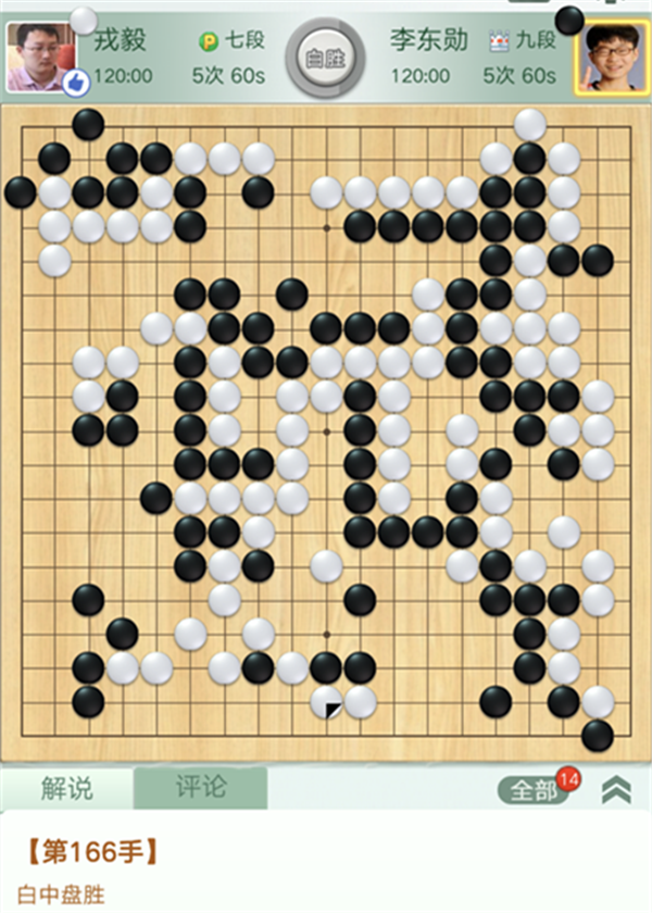 龍華隊戎毅七段本輪重新披掛上陣,執(zhí)白對陣韓國排名第四的李東勛。開局二十幾手時,黑在左上出現(xiàn)重大失誤,白棋大幅領(lǐng)先。之后,白思路清晰,掌控局面,優(yōu)勢逐漸擴大,而速勝。