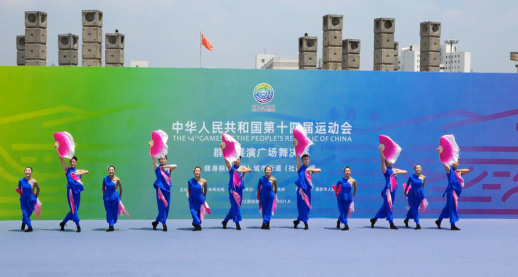 本屆全運會首次設(shè)置群眾展演項目廣場舞、廣播體操、健身氣功、太極拳4個大項,共766支隊伍6800多人參賽。廣場舞設(shè)健身舞、健身秧歌(鼓)、廣場龍舞三個分項,健身秧歌(鼓)分項線上展演及網(wǎng)絡(luò)投票于8月8日開始,8月22日結(jié)束,8月25日進行線下評審。