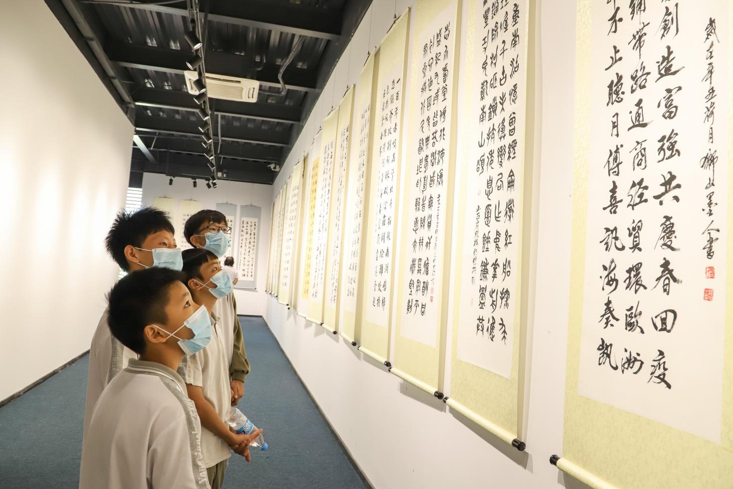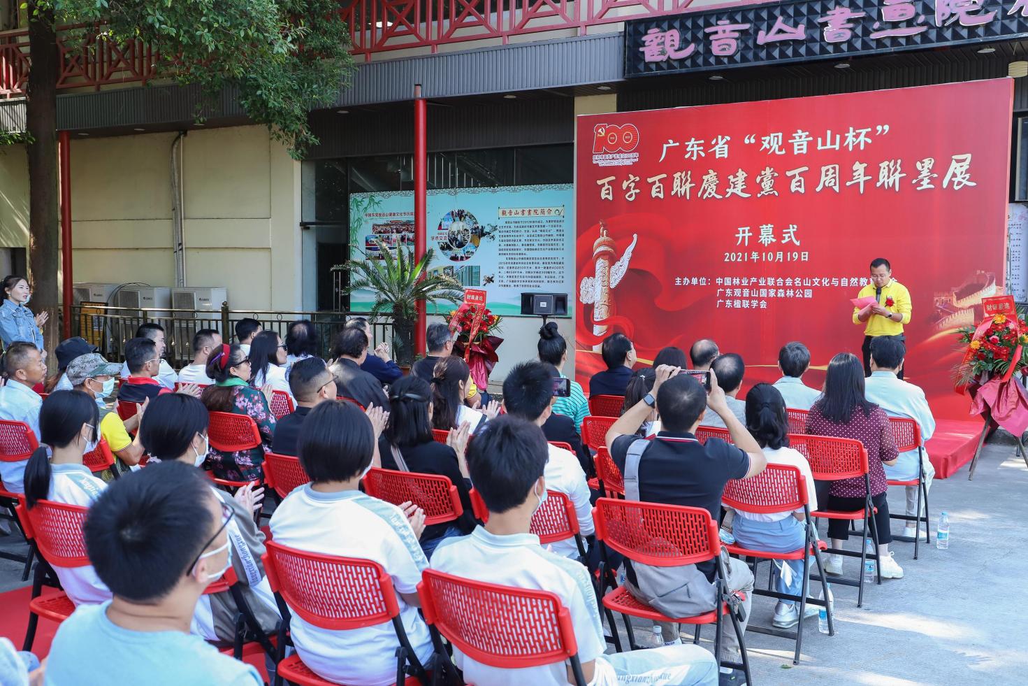 展覽開幕式上,吸引了眾多楹聯家、楹聯愛好者以及市民游客前來參觀,更有學校師生組團來參觀。中國楹聯學會顧委副主任、廣東楹聯學會顧委主任鄒繼海在開幕式上介紹到,百字百聯百幅書法作品慶建黨百周年,這四個一百的征聯活動在全國是最早的,也是唯一的,開創(chuàng)了楹聯文化界征聯的先河,值得高興,也值得我們自豪。隨后,鄒繼海宣布此次“觀音山杯”百字百聯百幅書法作品慶祝中國共產黨建黨一百周年的聯墨展觀音山站正式開幕。