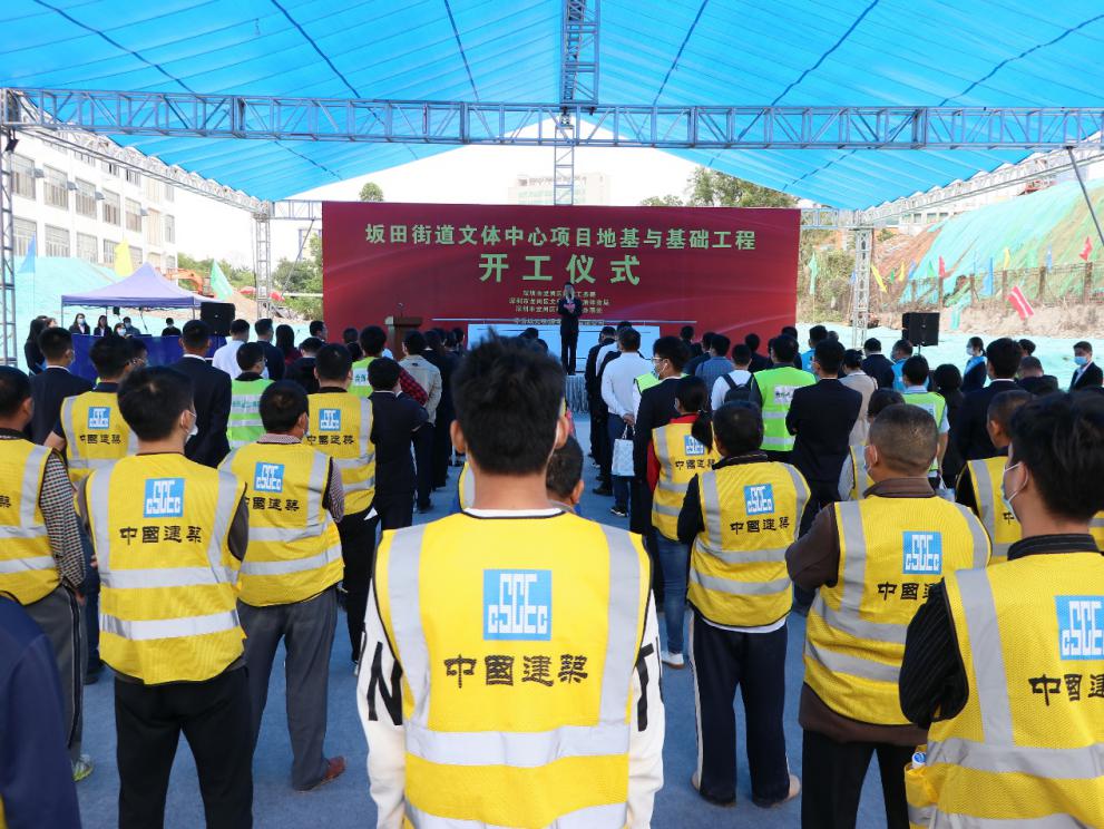 施工單位代表趙小東提出,坂田街道文體中心項目的落地,是龍崗推進城市建設再添新地標、助力鵬城提升城市品質的有力舉措。對于文體中心項目的建設工作,他代表中建八局作出莊嚴承諾,將以“三不”精神推進項目建設:一是不負眾望,堅定履約信心,全身心投入工程建設當中;二是不遺余力,狠抓工作落實,保證科學統(tǒng)籌,高效施工;三是不辱使命,奉獻優(yōu)質工程,在安全、質量、科技等方面優(yōu)先資源投入,打造安全工程、精品工程、智慧工程。