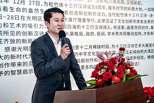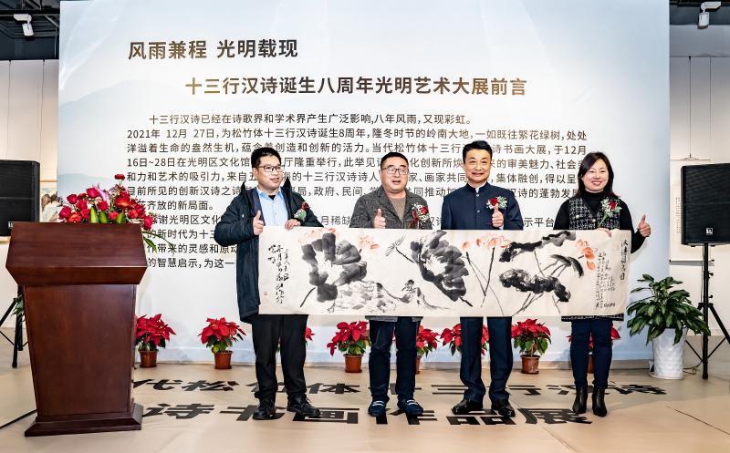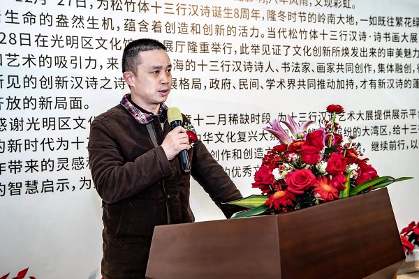 讀特客戶端·深圳新聞網(wǎng)2021年12月29日訊(記者 田志強(qiáng))近日,國家社科基金項(xiàng)目“當(dāng)代漢詩創(chuàng)新詩體研究”階段性成果展——十三行漢詩書畫作品展,于光明區(qū)文化館成功舉辦。本次展覽集中展示本項(xiàng)目重要研究成果、全國各地新漢詩詩人的原創(chuàng)十三行漢詩之書畫作品等。十三行漢詩創(chuàng)立八年以來,得到了海內(nèi)外詩人的廣泛關(guān)注,在國家社科基金研究團(tuán)隊(duì)精研闡釋的基礎(chǔ)上,得到了學(xué)術(shù)界的肯定。