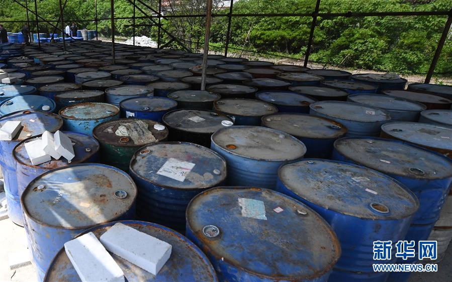 近日,湖北公安機關(guān)成功搗毀了一個在黃岡市蘄春縣非法制毒窩點,繳獲俗稱“喪尸藥”的新型毒品甲卡西酮9.1噸,各類制毒原料49噸以及大量制毒工具,抓獲犯罪嫌疑人15人。? 新華社記者程敏攝