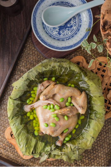 “池塘十里盡荷塘,姊妹朝來采摘忙,不摘荷花摘荷葉,飯包荷葉比花香。”清末民初的這首詞,表明了人們對用荷葉制肴的喜好。選用肉質(zhì)細嫩的仔雞,以荷葉包裹蒸熟,松軟適口,呈現(xiàn)原汁原味的鮮美,融合荷葉的幽幽清香,細細品味,仿佛回到夢里水鄉(xiāng)。