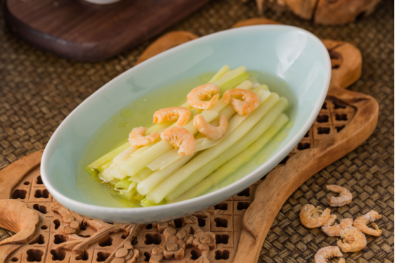 兩千多年前的《詩經(jīng)》即記有“彼降之坡,有蒲有荷”,水生的蒲菜潔白如玉、味美鮮嫩,采摘卻是費時費力,得來不易。精選淮安特產(chǎn)蒲菜,配以上等金鉤蝦米同烹,細嫩爽口,湯汁清鮮,清香四溢,似有嫩筍之味,為兩淮地域時令名肴。