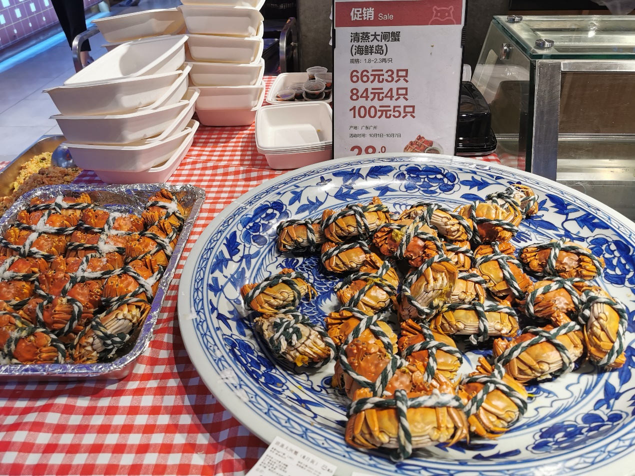 其中爆款非大閘蟹莫屬。民間有個講究:“九雌十雄”,農(nóng)歷九月吃母的大閘蟹,農(nóng)歷十月吃公的,因為那時候大閘蟹的蟹黃和蟹膏是最好的。黃金周期間,盒馬深圳大閘蟹銷量與9月相比增長六倍。其中最受歡迎的是2兩重的母蟹,盒馬皇庭廣場店假期里試過一天賣出近兩千只大閘蟹。