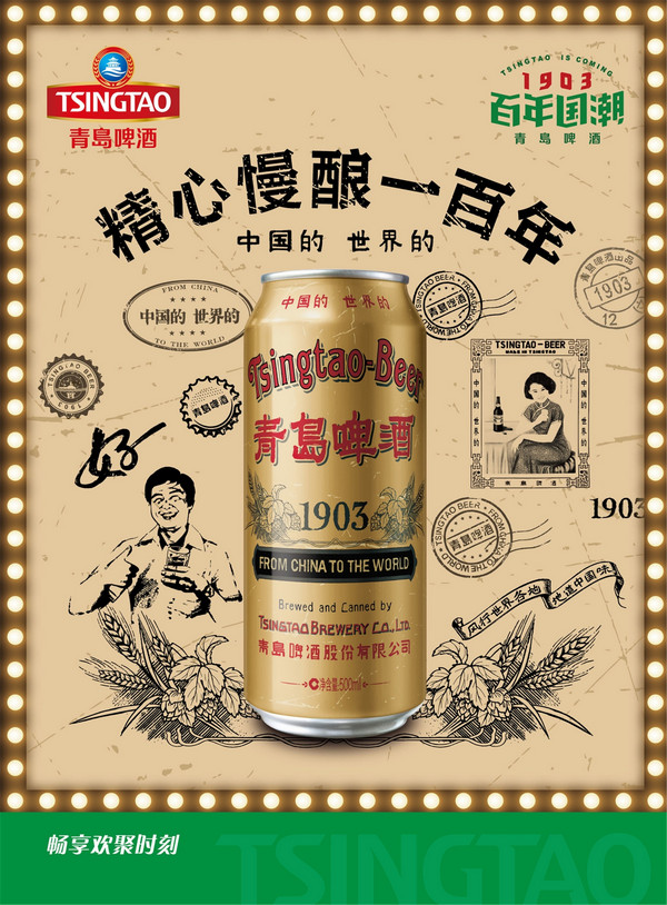 經(jīng)典1903國潮罐是青島啤酒為再造精釀傳奇,傳承青啤文化和品牌魅力的產(chǎn)品。采用源自1903年的“兩段法低溫釀造工藝”,精心慢釀,造就了醇香四溢的口感和體驗。罐體上復(fù)刻了百年前經(jīng)典瓶貼畫面,是啤酒中的國潮和時尚的典范。