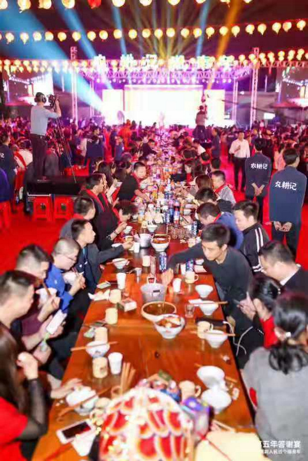 據(jù)了解,本次答謝宴是由農(nóng)耕記湖南土菜舉辦的第五年顧客答謝宴,為表達(dá)顧客對農(nóng)耕記支持的感謝,農(nóng)耕記湖南土菜在1月11日當(dāng)天在深圳22家門店進(jìn)行全場菜品5折的活動,同時在塘頭工業(yè)園布置近3000平米湖南村鄉(xiāng)下宴席,宴請全深圳人民過個湖南年。