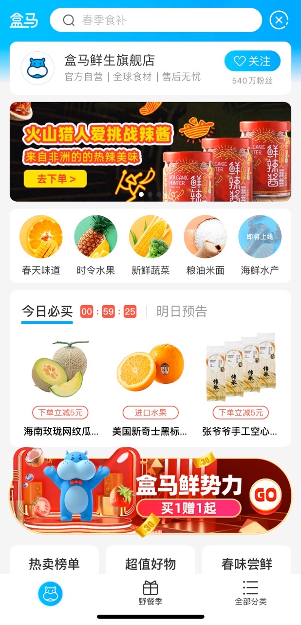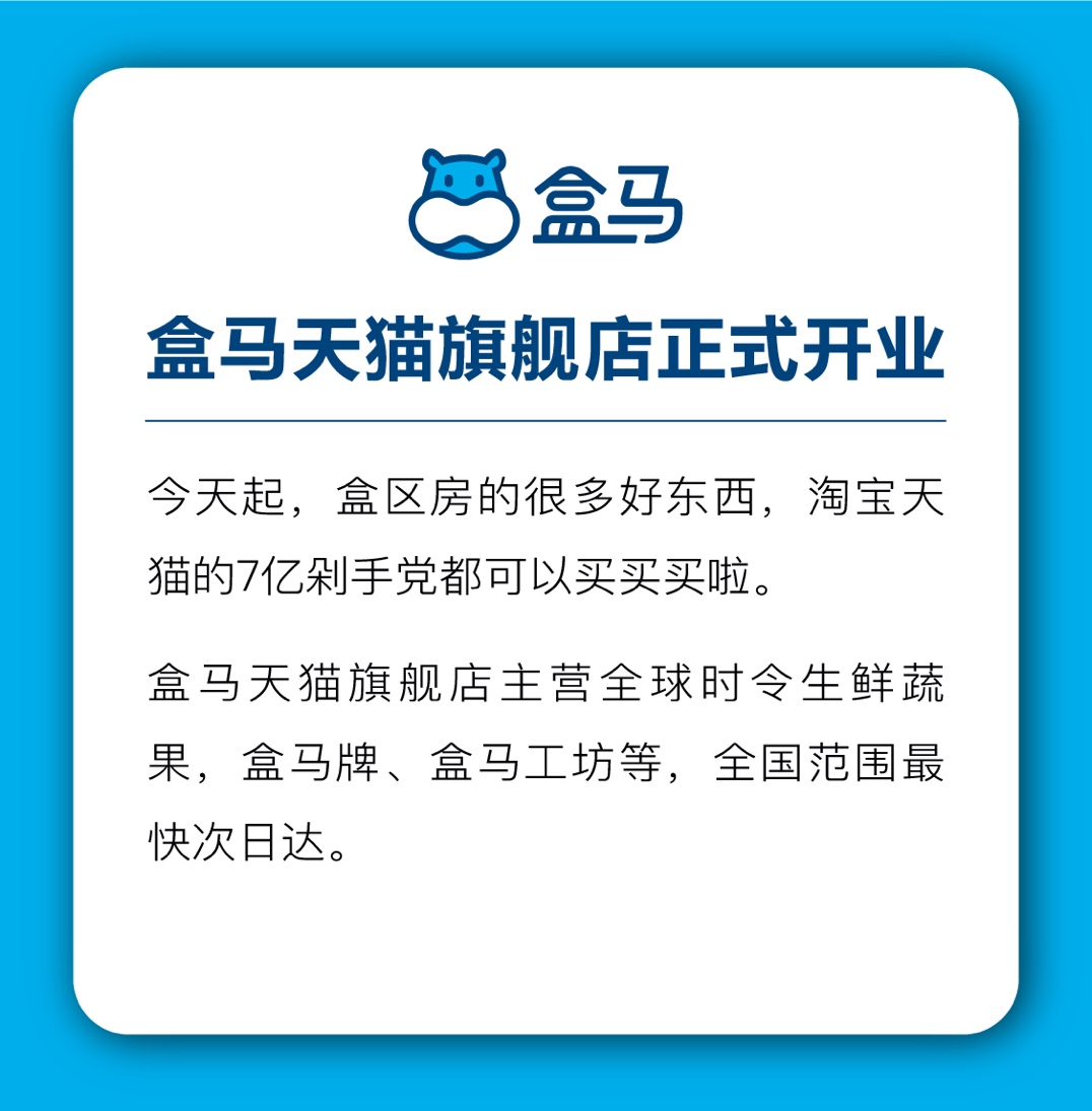 4月21日,盒馬鮮生天貓旗艦店正式亮相。這是2020年盒馬的重要生態(tài)布局之一。淘寶、天貓的7億消費(fèi)者,也可以享受到盒馬全球時(shí)令的生鮮蔬果,以及盒馬牌、盒馬工坊等頭部?jī)?yōu)質(zhì)商品,將安全、鮮美的地方農(nóng)貨特產(chǎn),端上百姓餐桌。